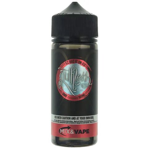 Ruthless Ez Du It on Ice shortfill: A chilled blend of watermelon and strawberry enhanced with cooling ice, offering a crisp, refreshing, icy fruit experience perfect for menthol lovers.